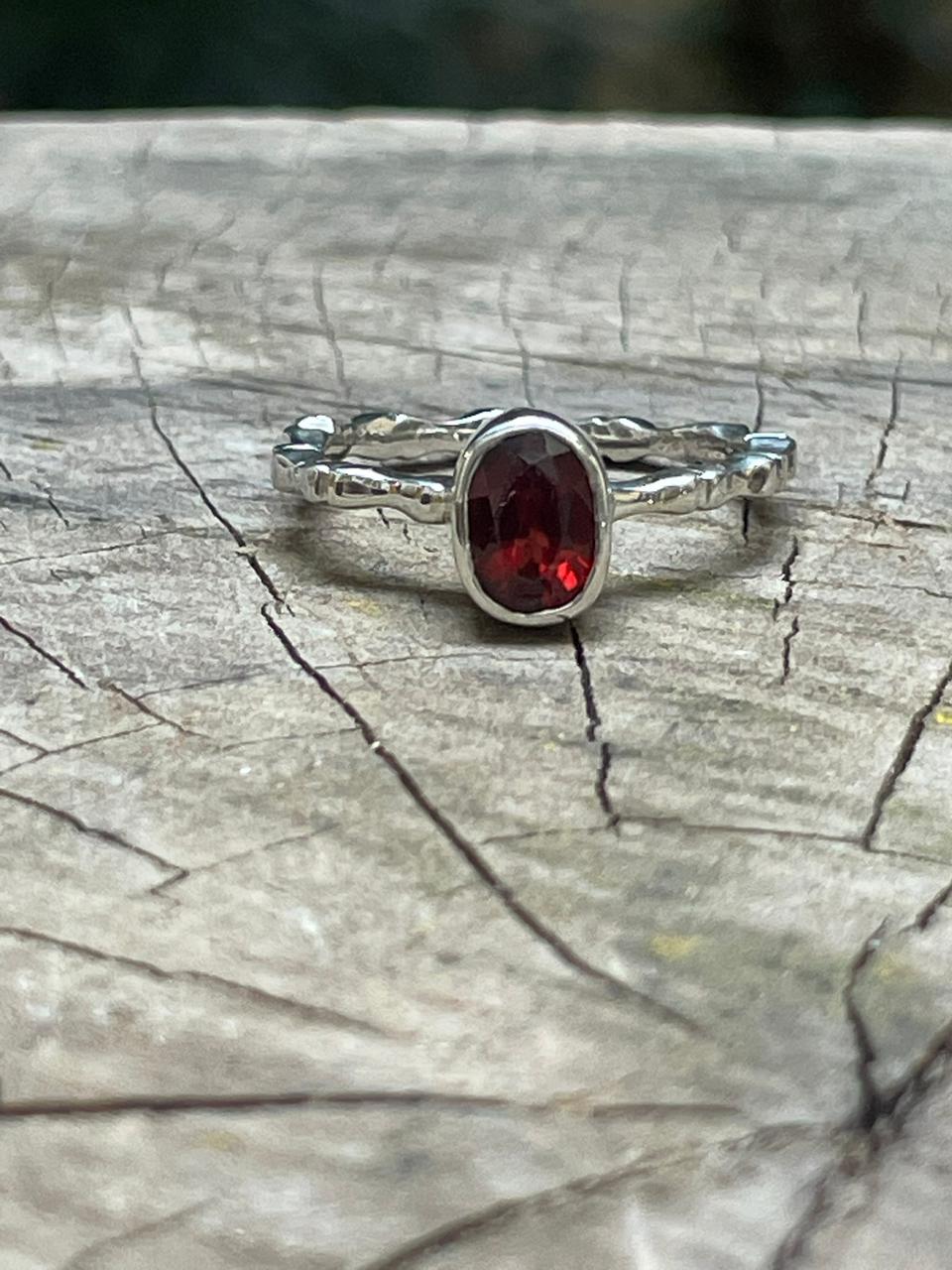 Forjado em prata 950, o Anel Fênix exibe ao centro uma granada natural de vermelho intenso. Símbolo de renovação, força e paixão, esta joia carrega a energia vibrante de recomeços e a elegância de um design atemporal.