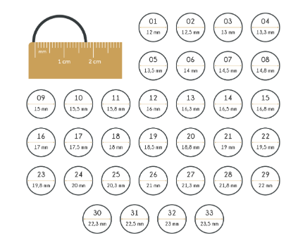 Veja abaixo a tabela de medida de anéis: