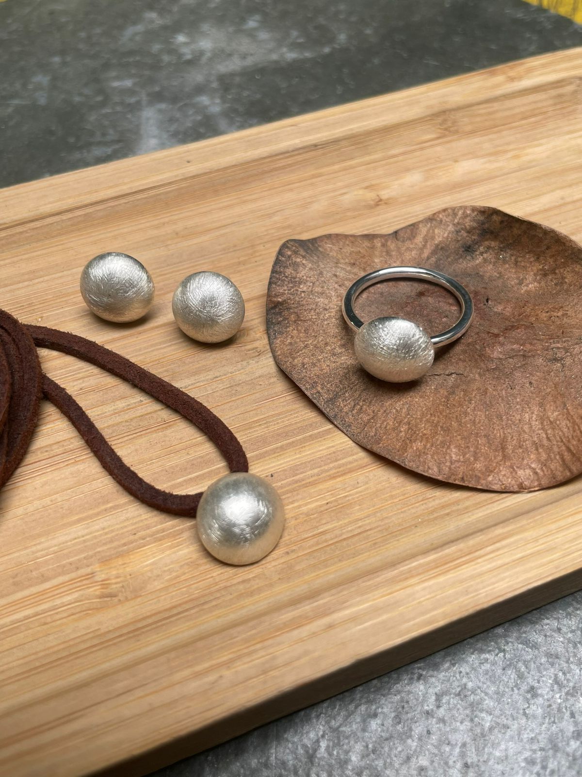 As esferas em prata trazem suavidade. Minimalista e contemporânea, o conjunto esfera é um convite a redescobrir a beleza que existe na simplicidade do desenho essencial.